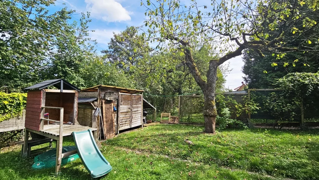 Das Grundstück dieser Immobilie grenzt direkt an ein Firmengelände, wird jedoch durch einen breiten und dichten Grüngürtel geschützt. Dieser sorgt dafür, dass das Firmengebäude weder visuell noch akustisch wirklich wahrgenommen wird. Dank modernster Lärmschutztechnologien dringt zudem kein Produktionslärm aus dem Firmengebäude in Haus und Garten, sodass Sie hier eine ruhige und entspannte Atmosphäre genießen können.